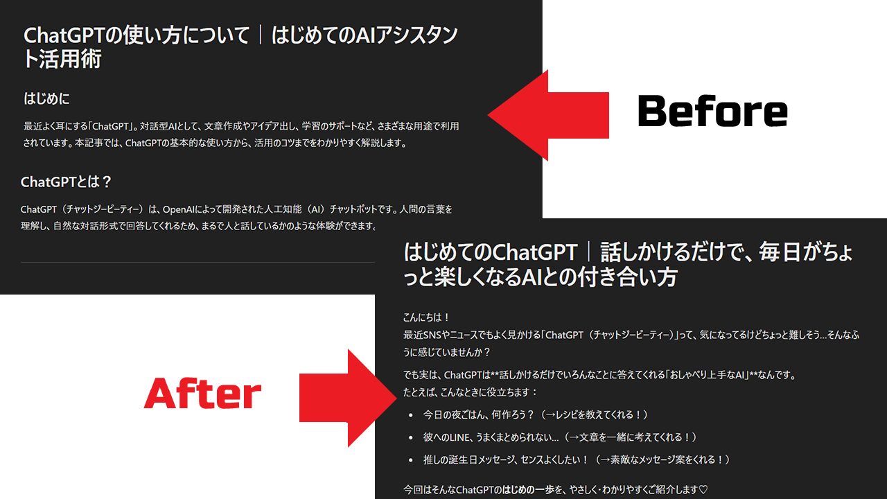 伝え方を変えるだけで、ChatGPTの出力は大きく変わります!